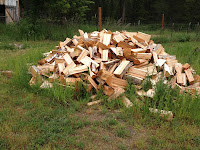 Now that she has most everything put away we will begin bringing in our wood supply. We've got two cord out in the field next to our house that's been there since early this spring. It was already dried but this summer was so warm it will be dry and perfect for winter burning. With our wonderful forced air furnace the house is usually warm enough, unless we have a power outage, or it is windy. Then that wood stove sure feels good. Its mostly just a safety measure these days but every once in a while its nice to feel that wood heat on my backside.